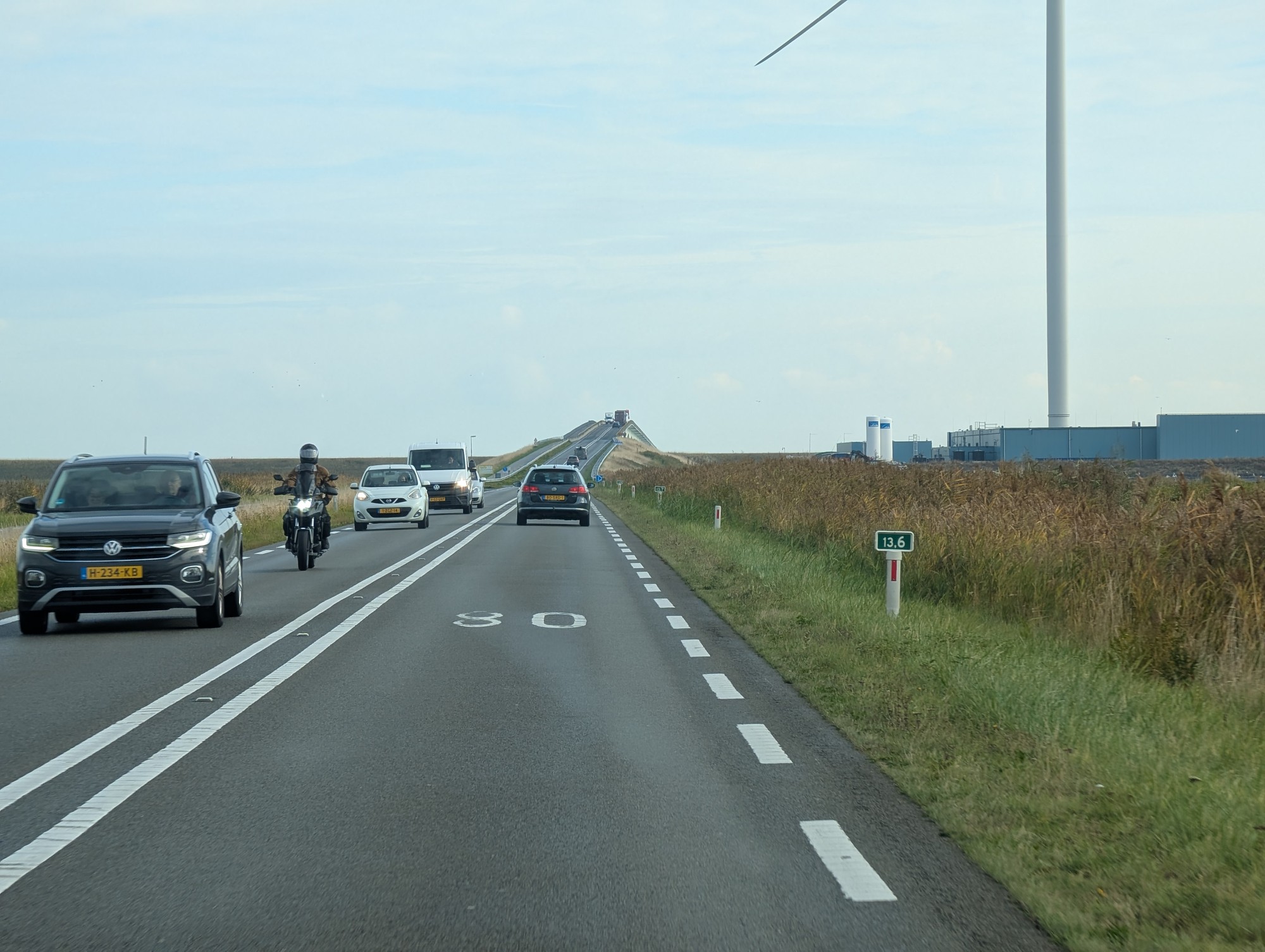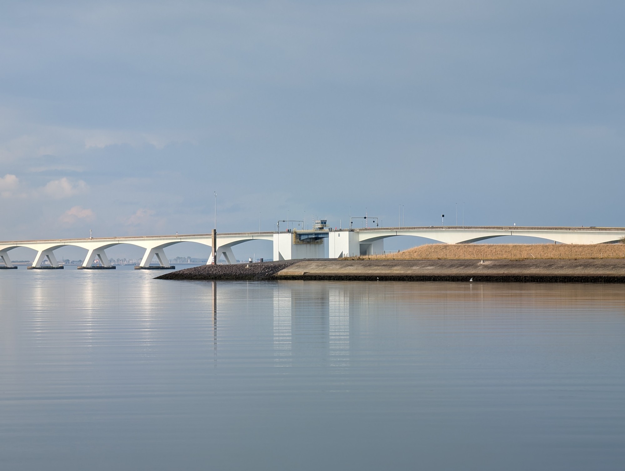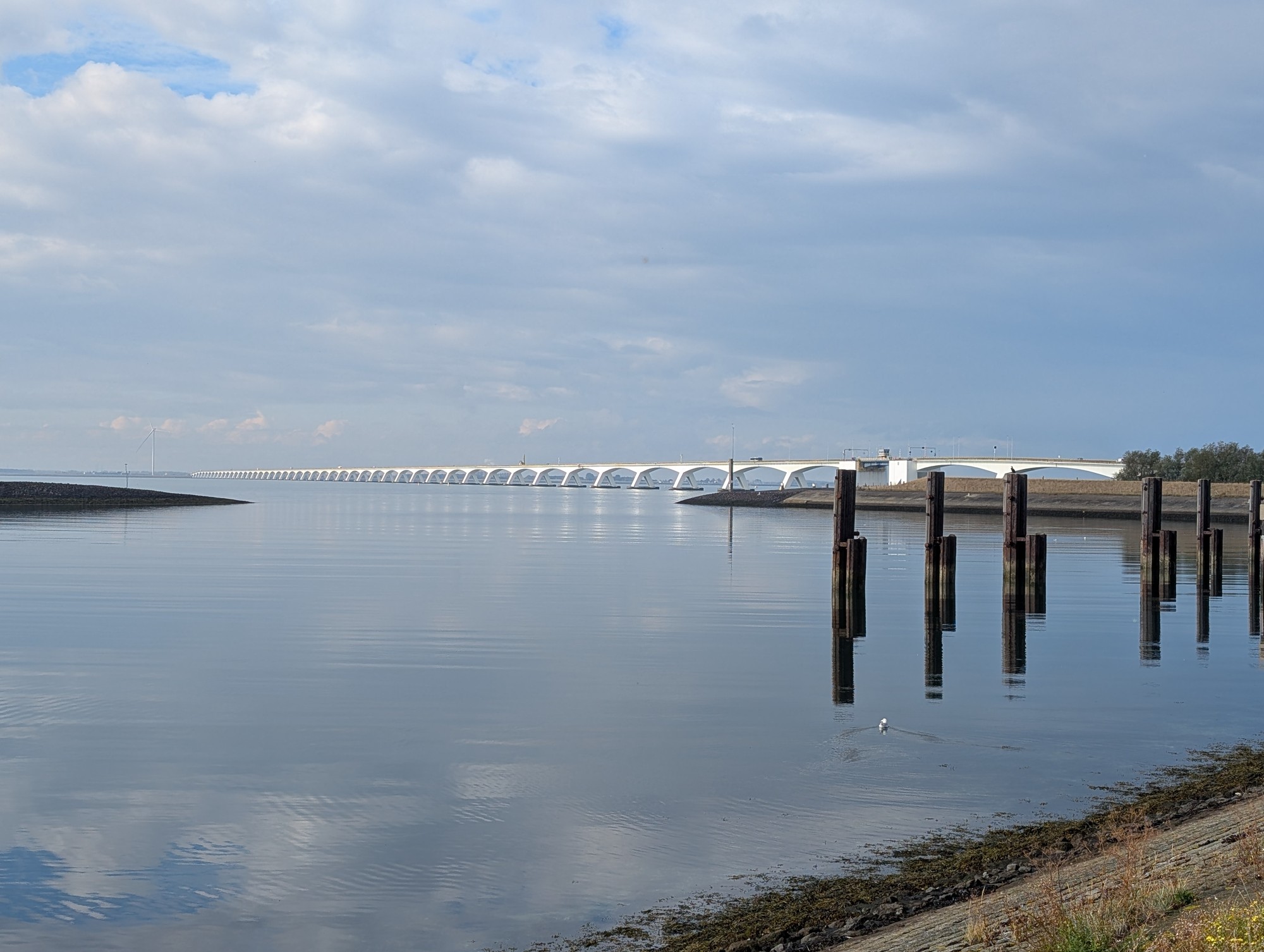 Das nächste Bauwerk ist die Zeelandbrug. Die gehört nicht zu den Deltawerken, sondern ist “nur” eine Brücke über die Oosterschelde. Mit ihren über fünf Kilometern Länge ist sie aber durchaus knipsenswert. Von der Fertigstellung 1965 bis zum Jahr 1972 war sie die längste Brücke Europas.