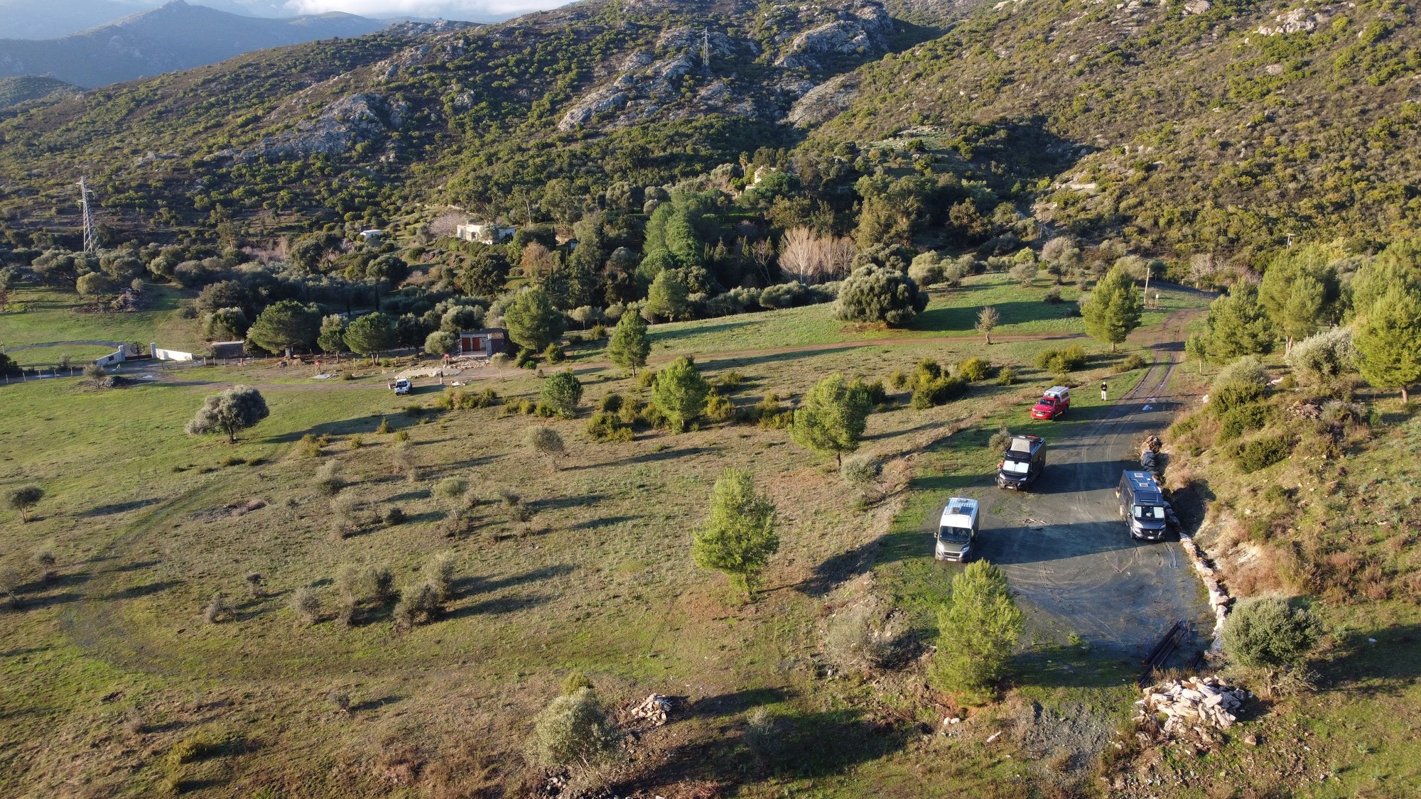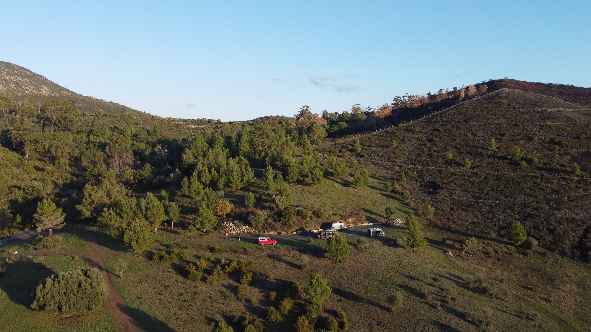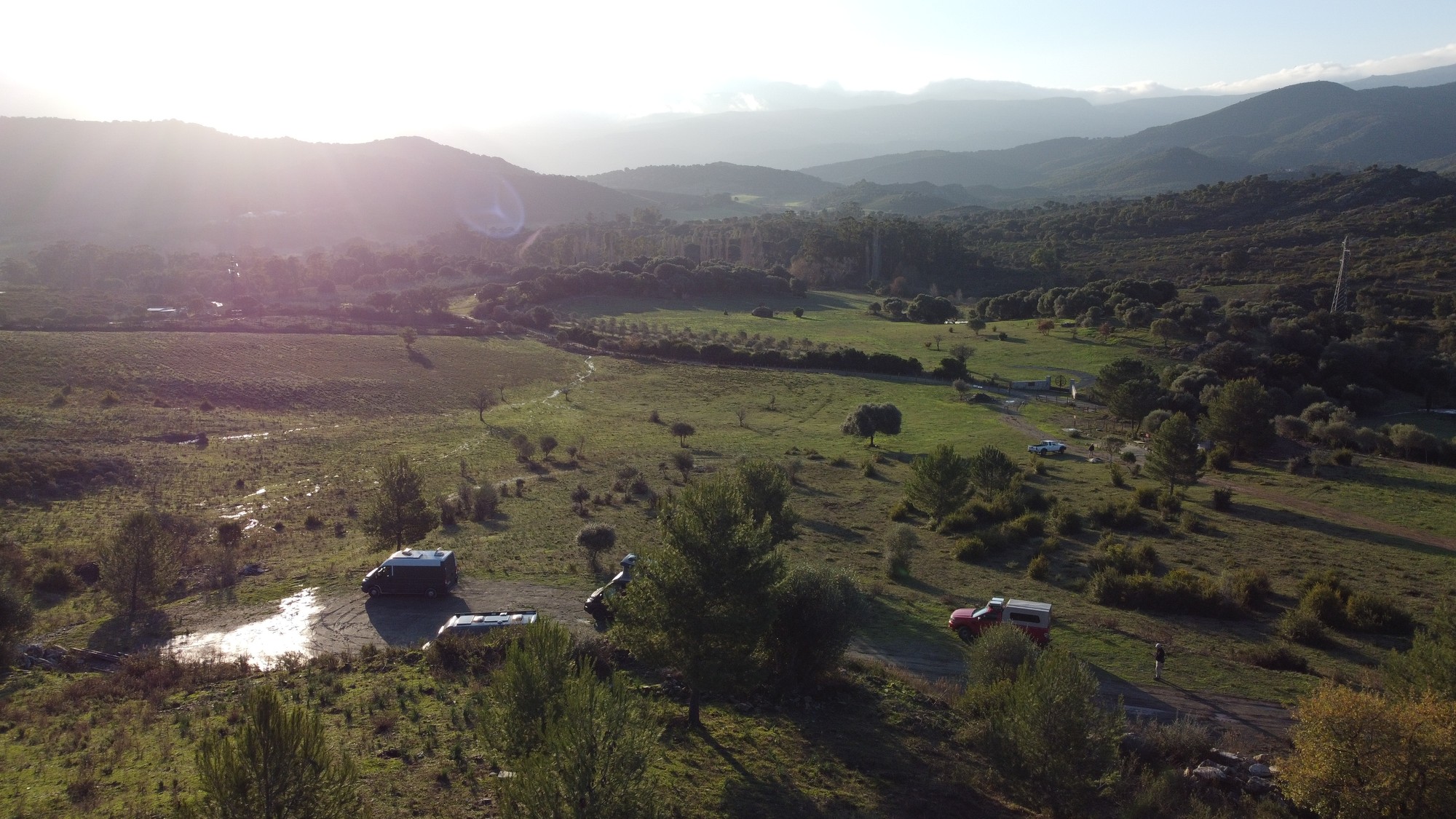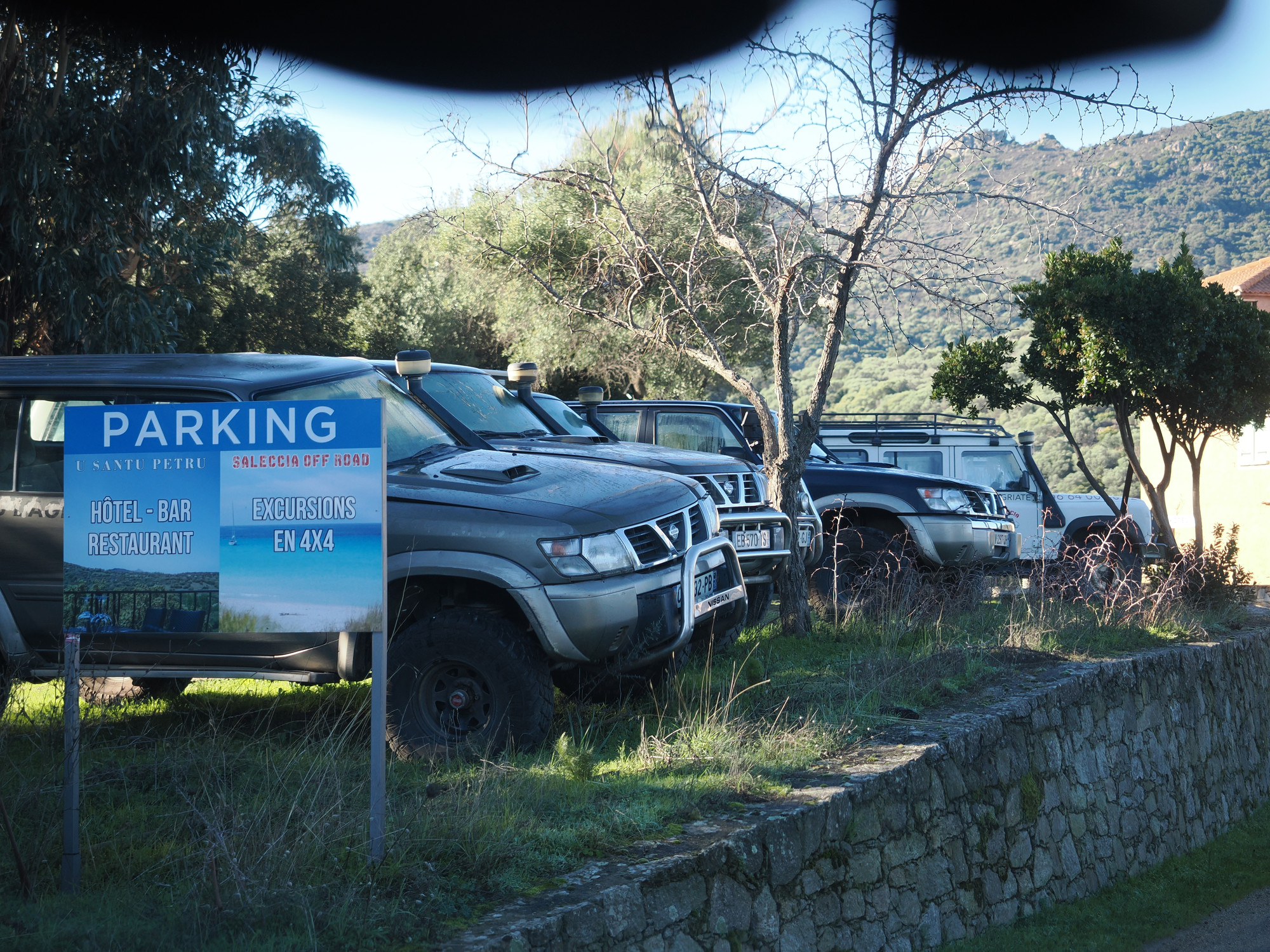 Der Stellplatz, den wir ausgesucht haben, ist in Galéria. Eigentlich ist es ein normaler Parkplatz, auf dem wohl auch Camper erlaubt sind. Momentan sind zwar alle Schilder abgebaut, aber wir stellen uns trotzdem hin. Und da sind wir auch nicht die einzigen.