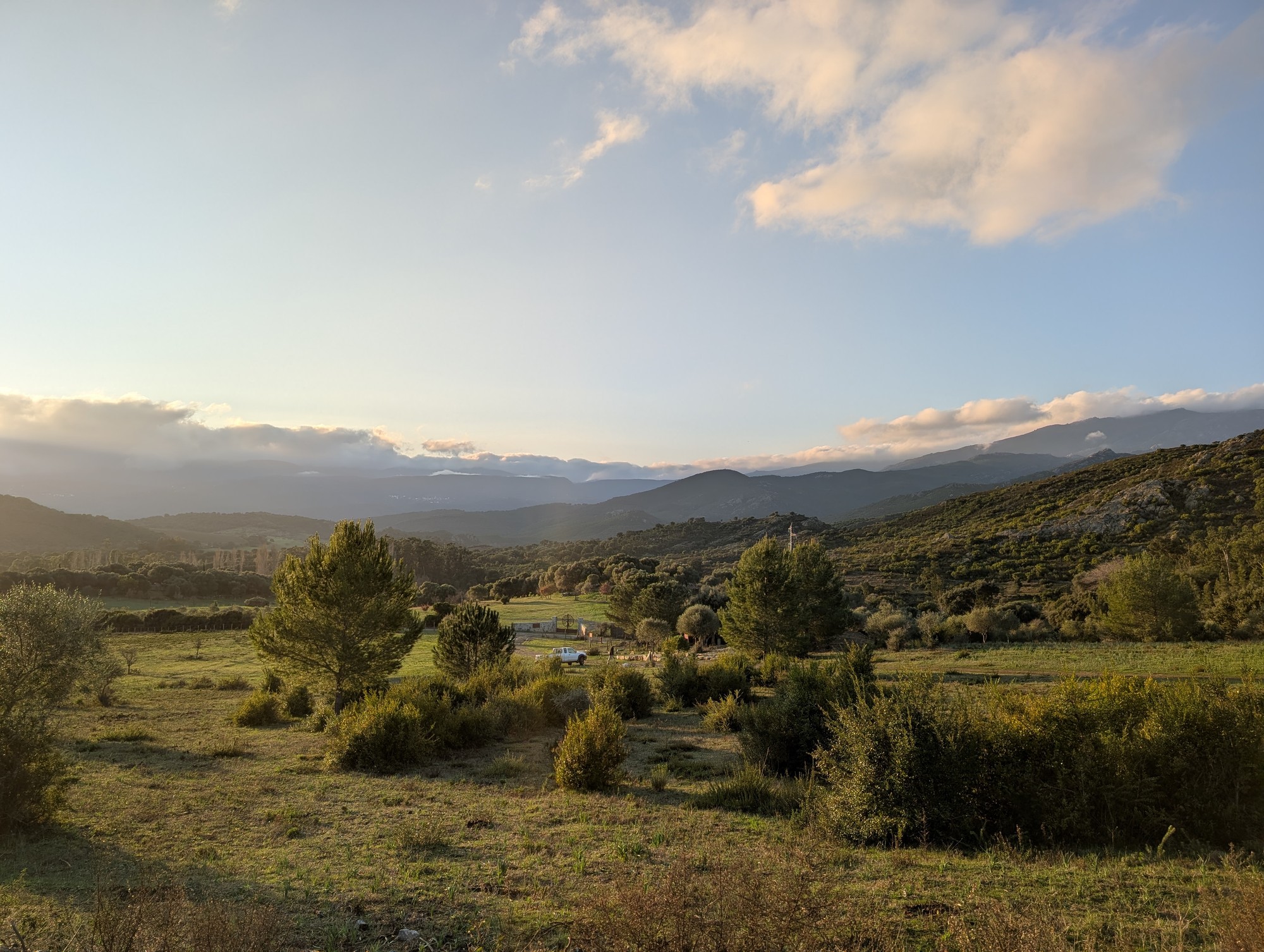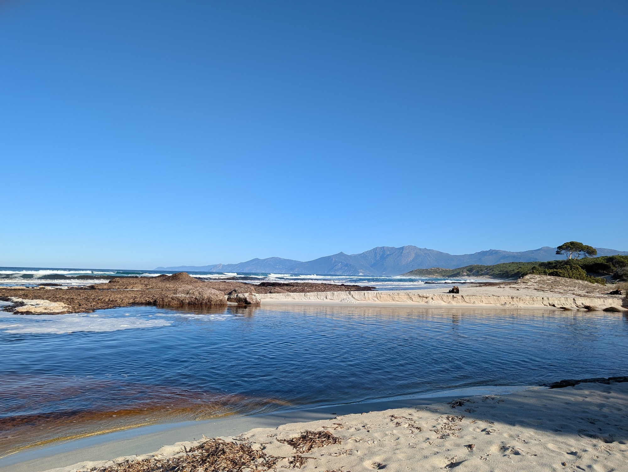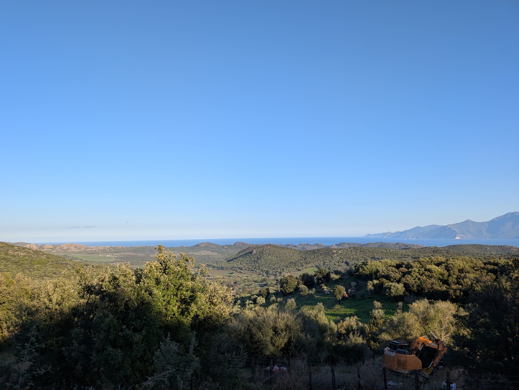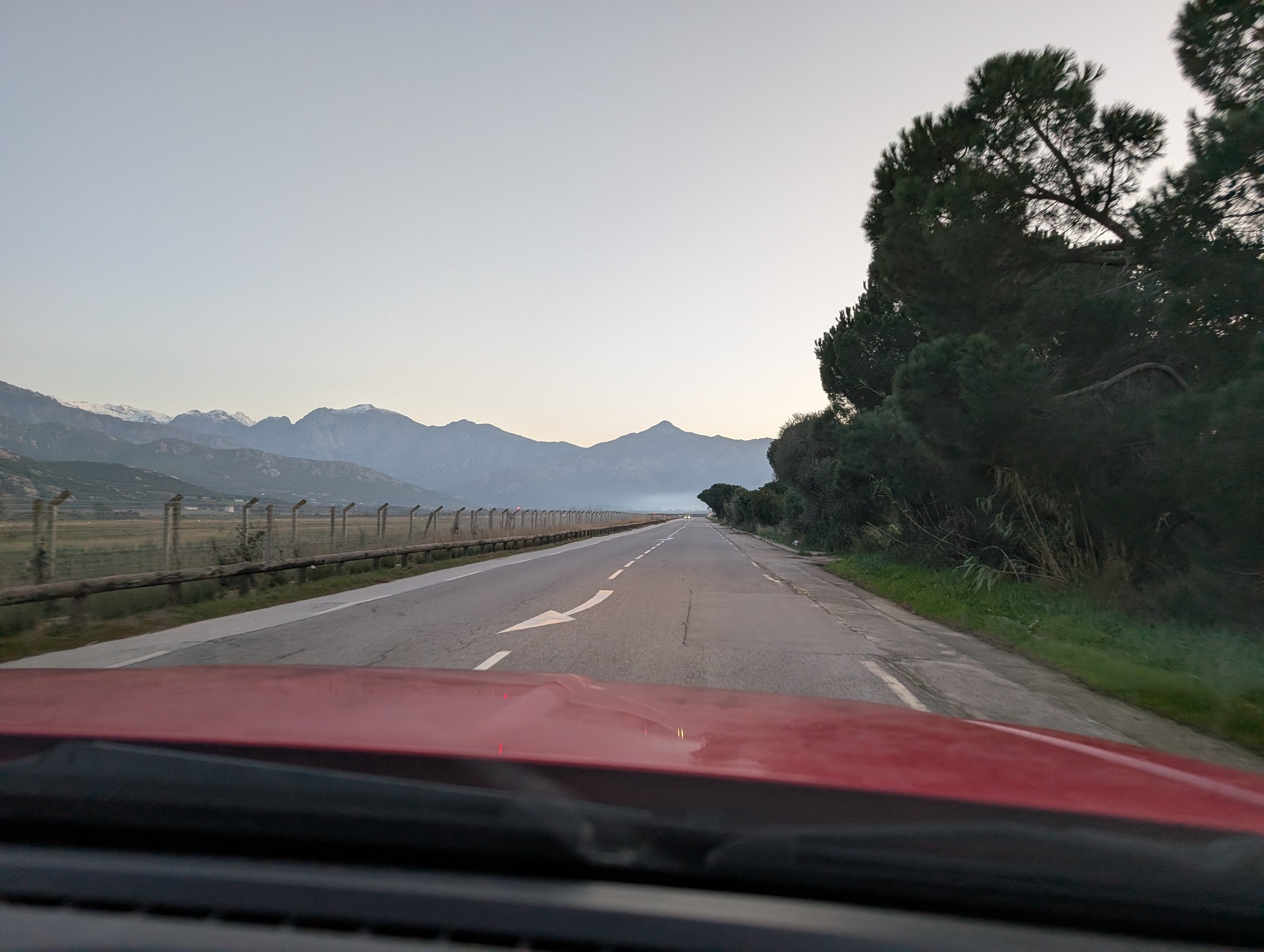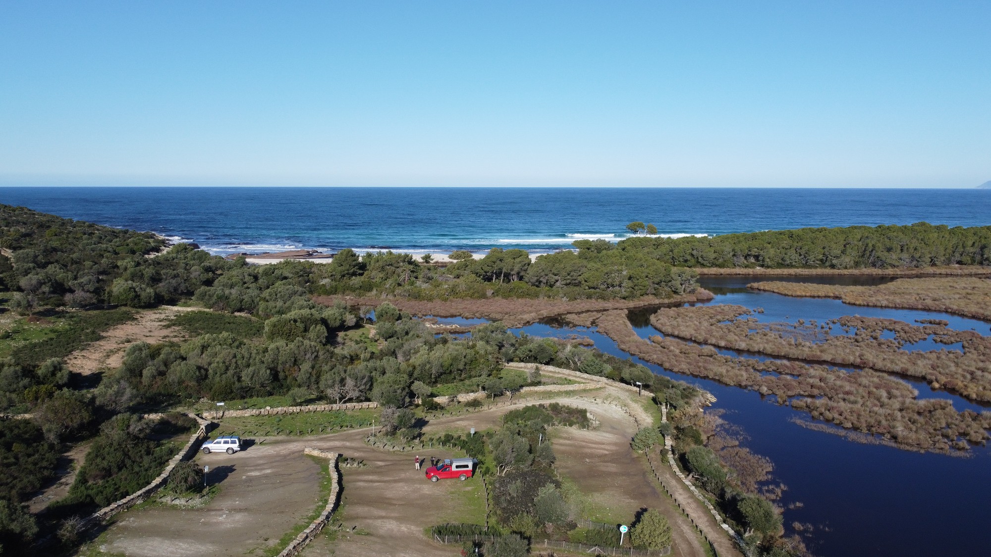 Der Stellplatz, den wir ausgesucht haben, ist in Galéria. Eigentlich ist es ein normaler Parkplatz, auf dem wohl auch Camper erlaubt sind. Momentan sind zwar alle Schilder abgebaut, aber wir stellen uns trotzdem hin. Und da sind wir auch nicht die einzigen.