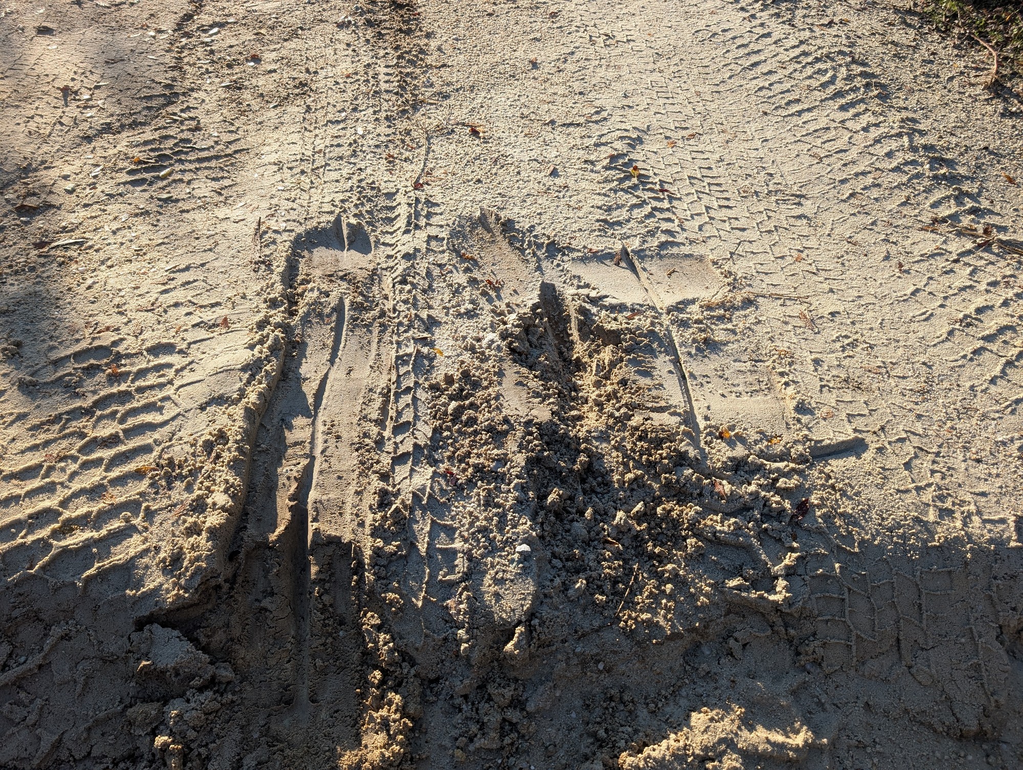 Wir setzen schon ziemlich am Anfang einmal übelst auf. Ich habe mich heftig erschrocken, weil das nicht nur laut, sondern auch mehr als deutlich zu spüren war. Ich dachte, es sei etwas kaputt. Aber wir haben nur mit der Stoßstange aufgesetzt und tiefe Spuren im Boden hinterlassen.