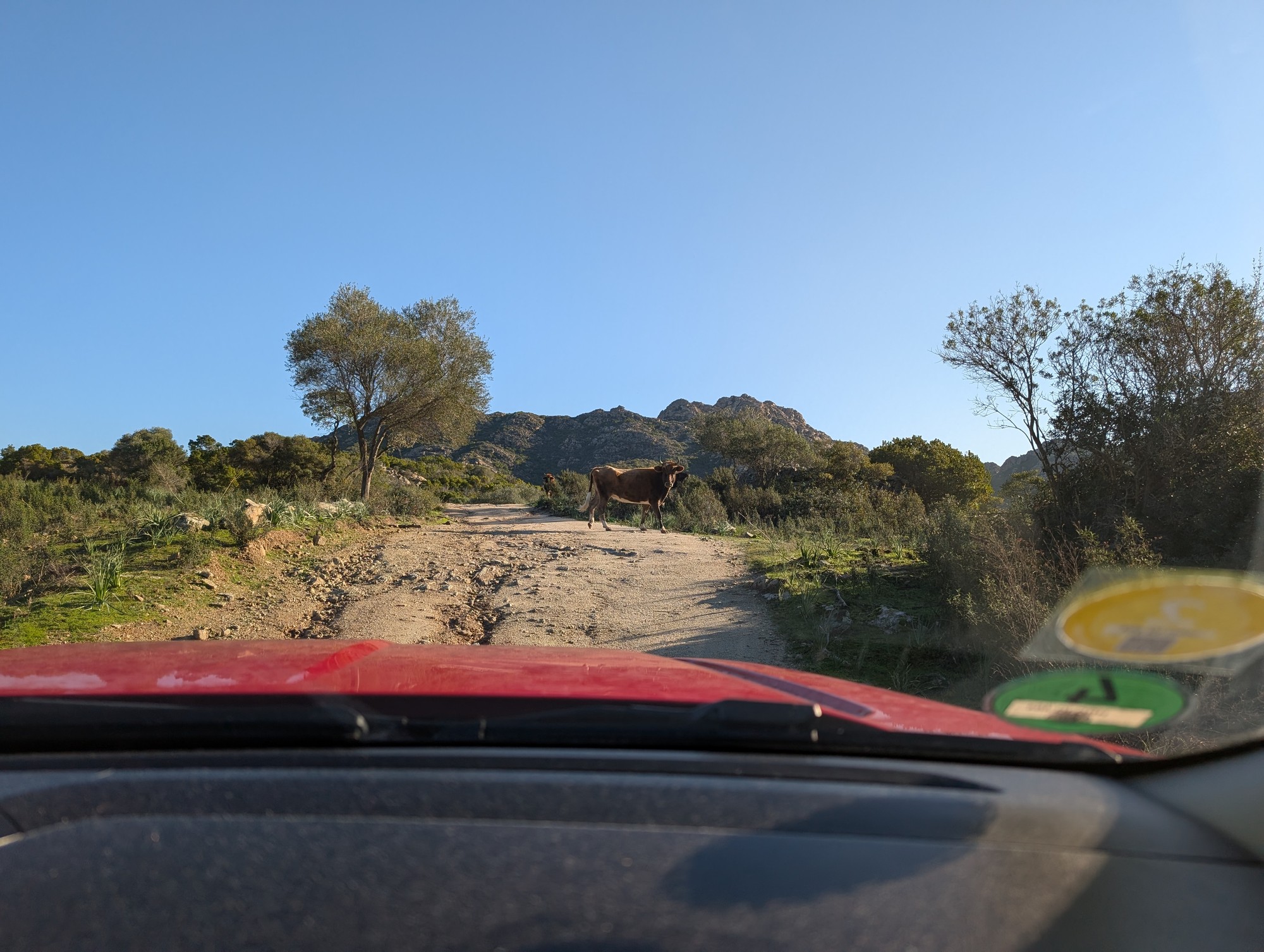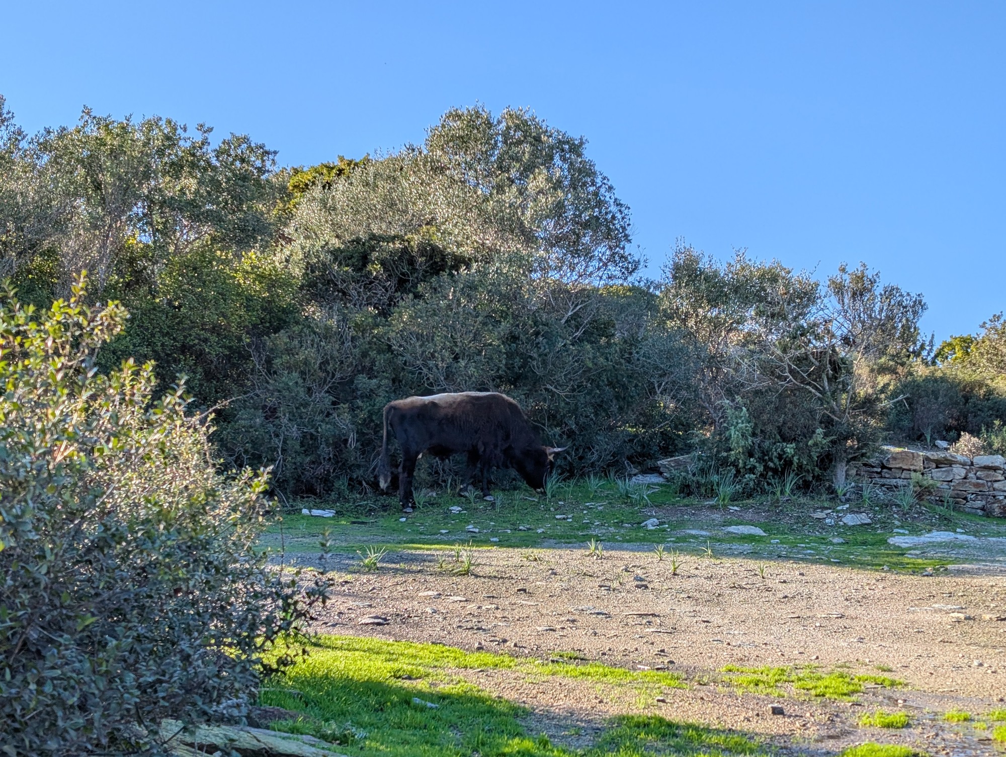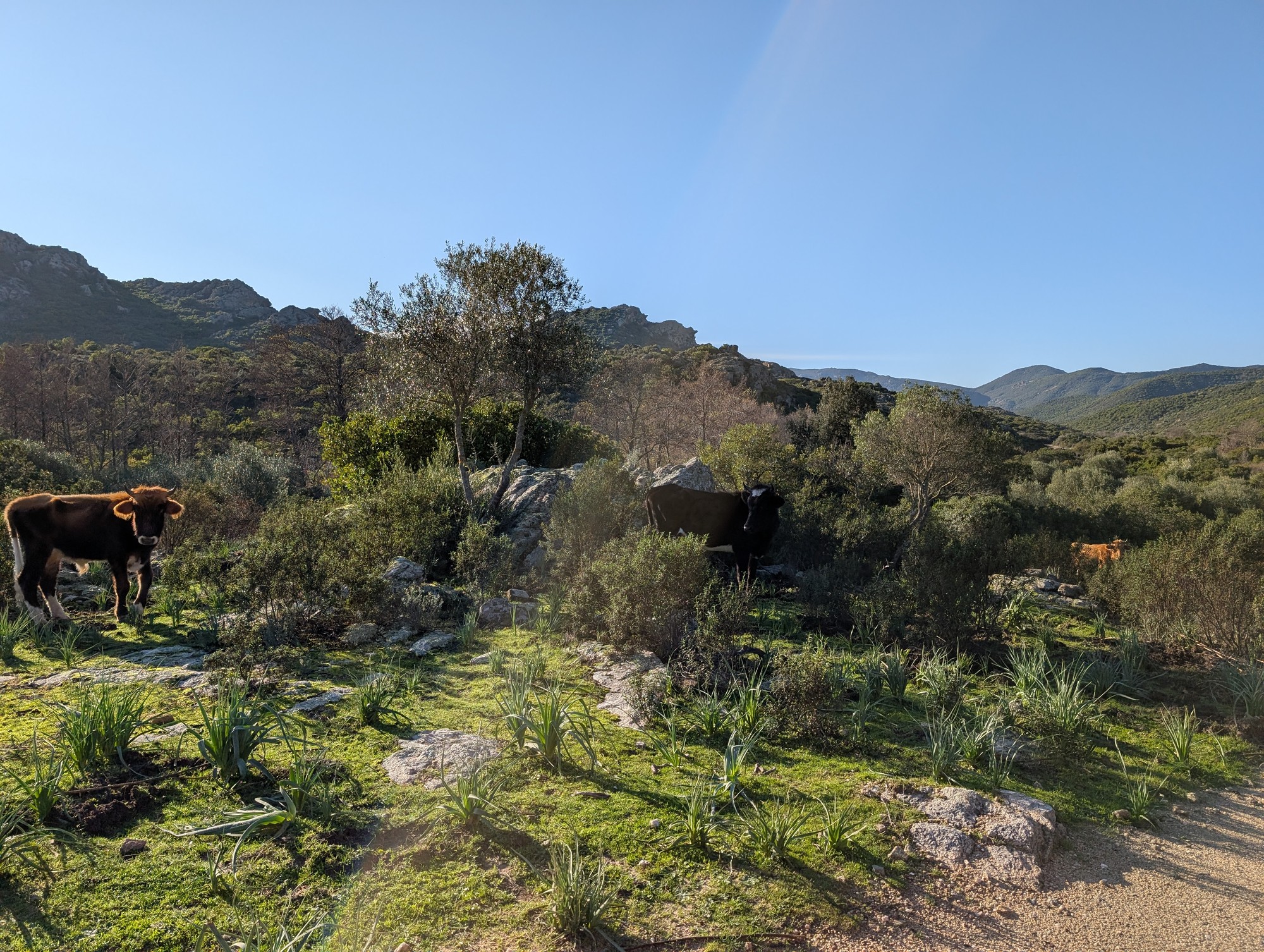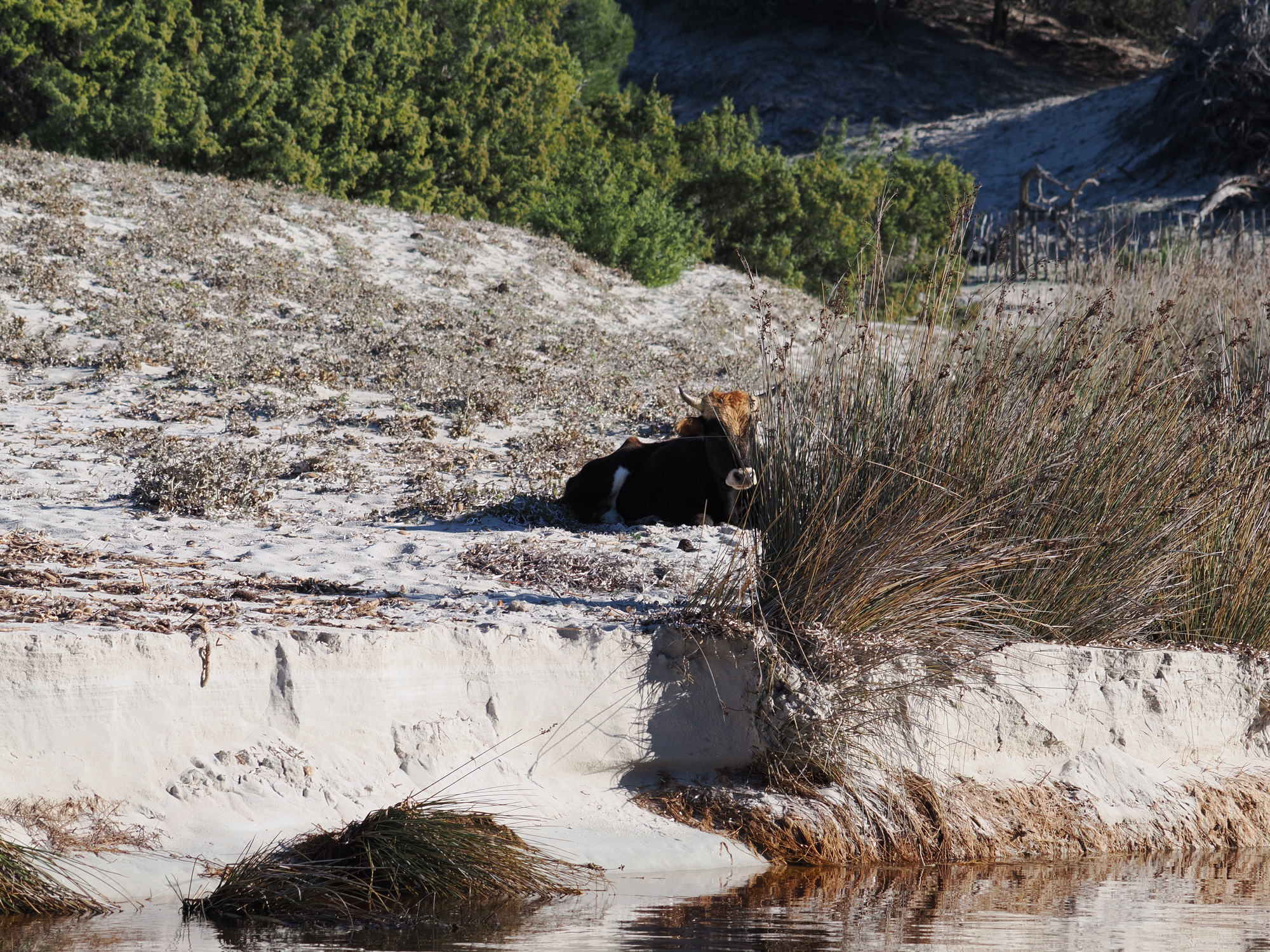 Mit Kühen hatten wir nun nicht gerechnet. Da wir die beiden nicht stören wollen, kehren wir zeitig wieder um.