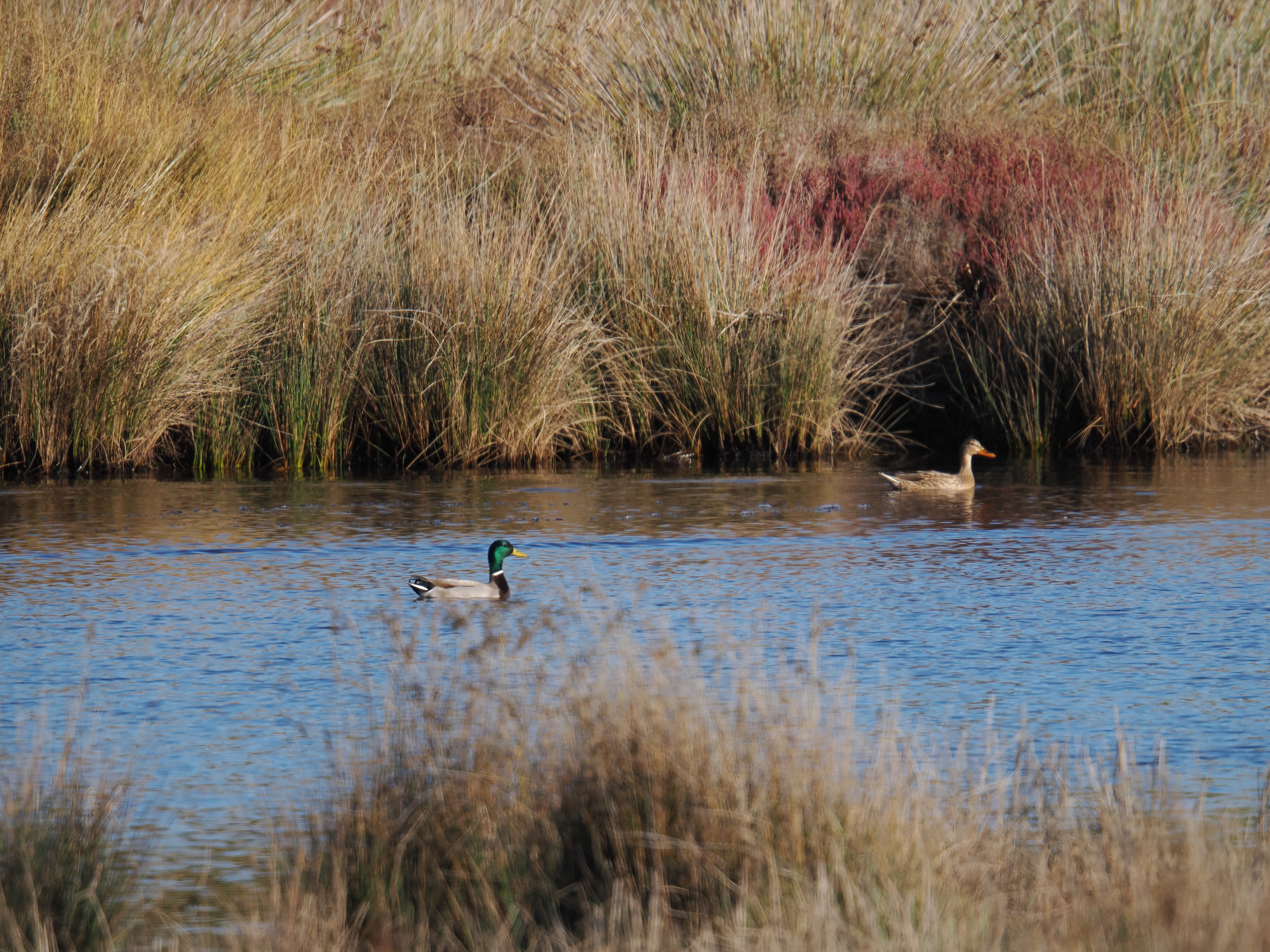 Am Ende der Strecke ist ein Parkplatz. Neben dem Parkplatz ist eine Lagune. Dort tummeln sich ein paar Wasservögel.