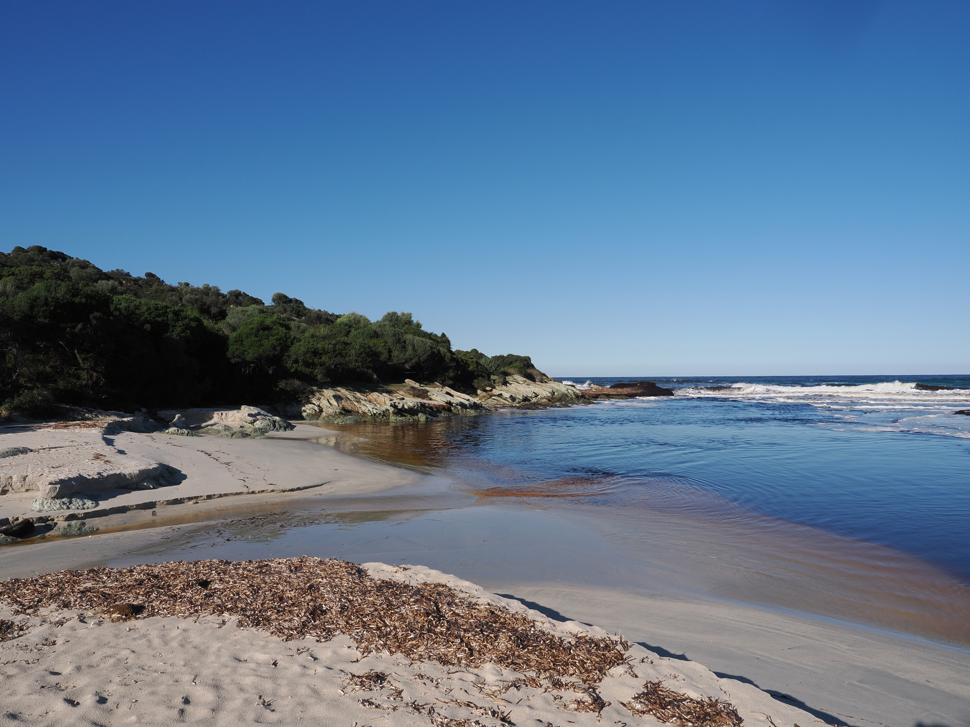 Vom Parkplatz aus führt außerdem ein schmaler Weg zum Strand. Natürlich wollen wir dort hin.