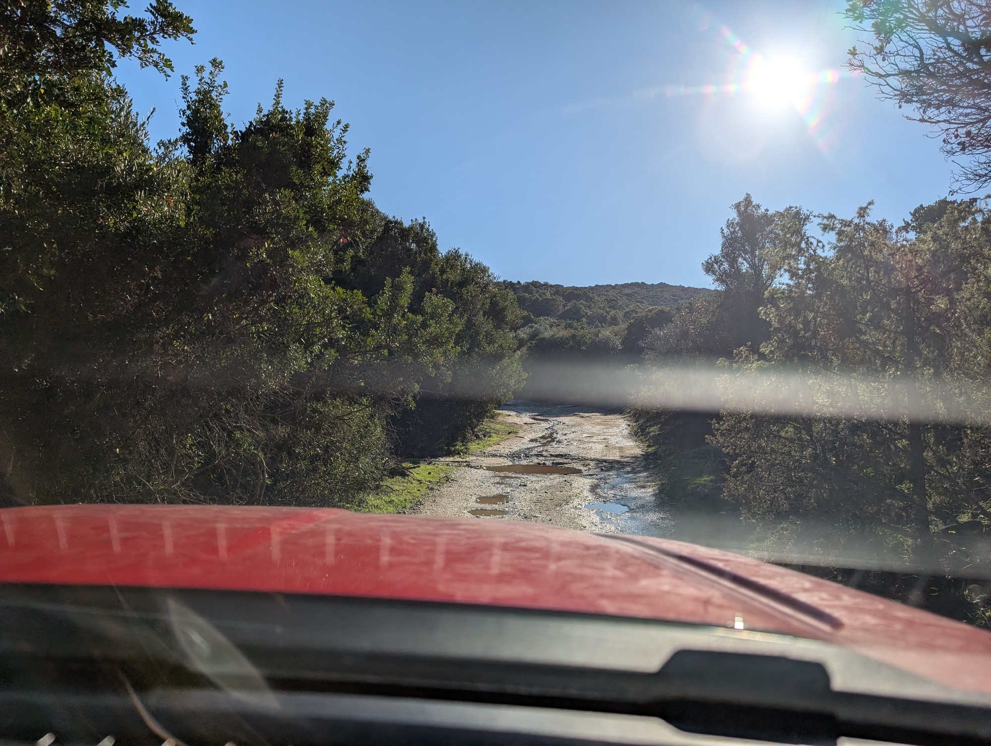 Nach dem Essen treten wir die Rückfahrt an. Die meiste Zeit fährt zwar der Herr Lebensabschnittsgefährte, der hat nämlich an diesen 4x4-Strecken mehr Spaß als ich, die lieber die Kurvenreichen Bergstraßen fährt. Aber für einen kurzen Zeitpunkt tauschen wir, damit der Mann die Drohne fliegen und unser Auto filmen kann. Das ist im Video zu sehen.