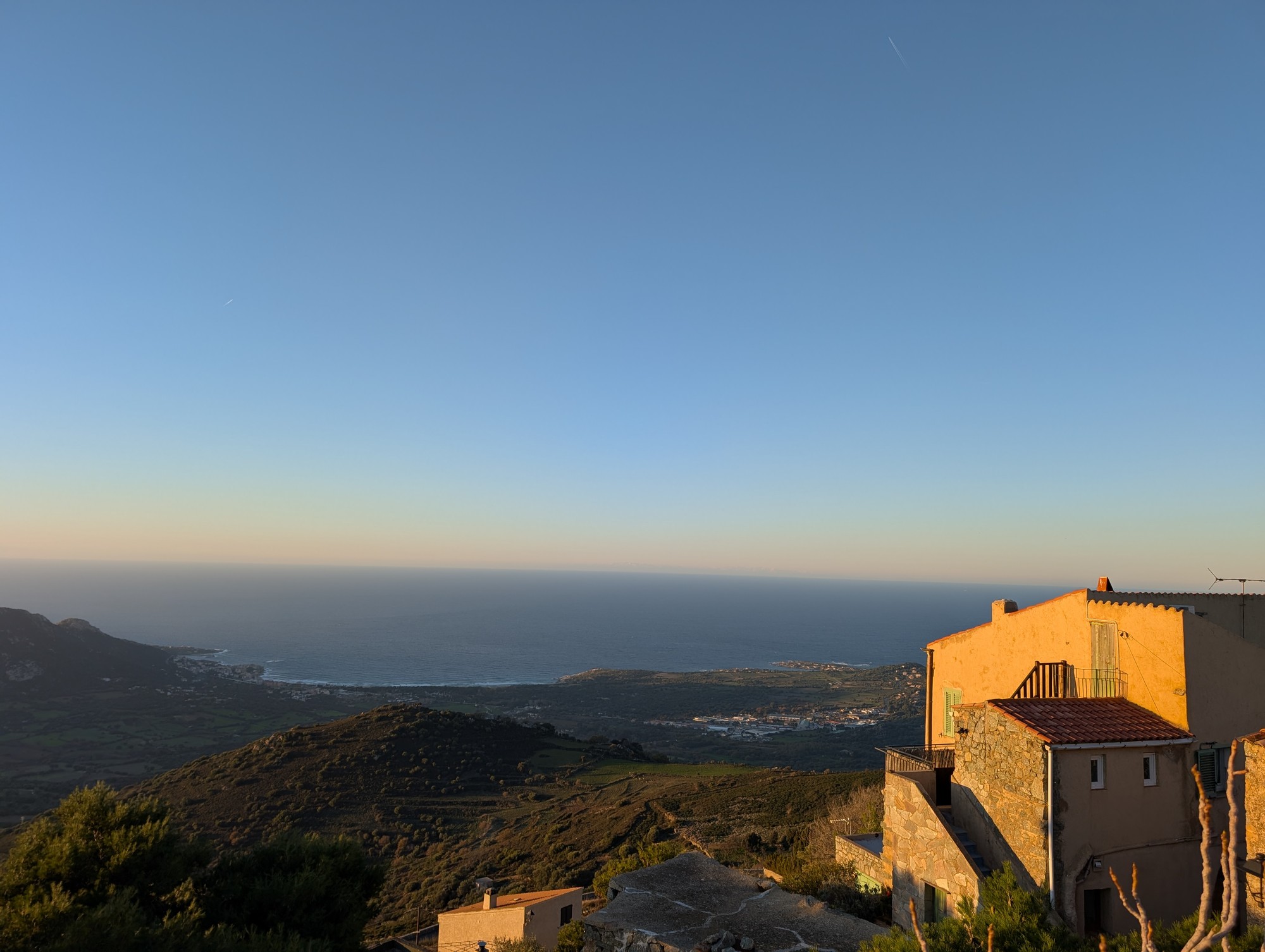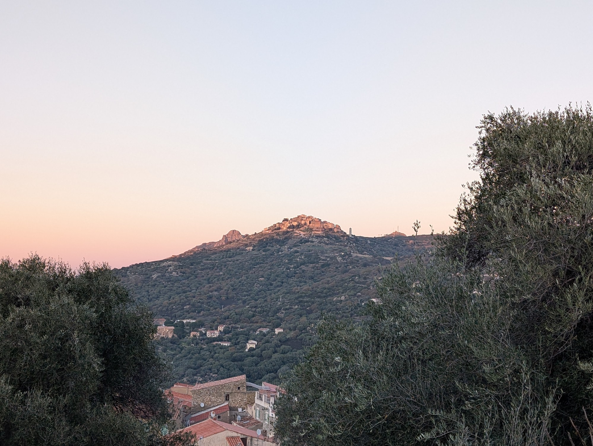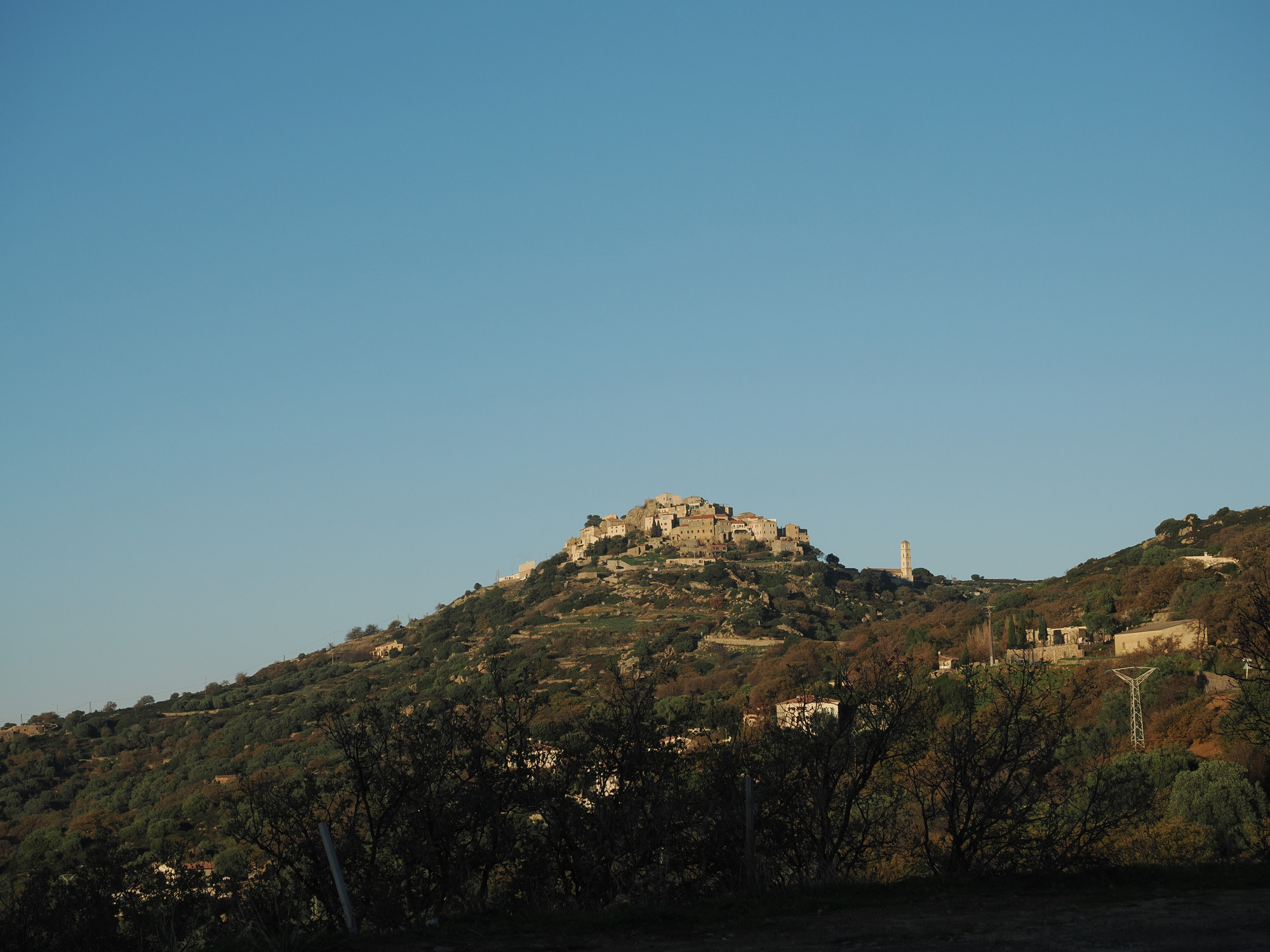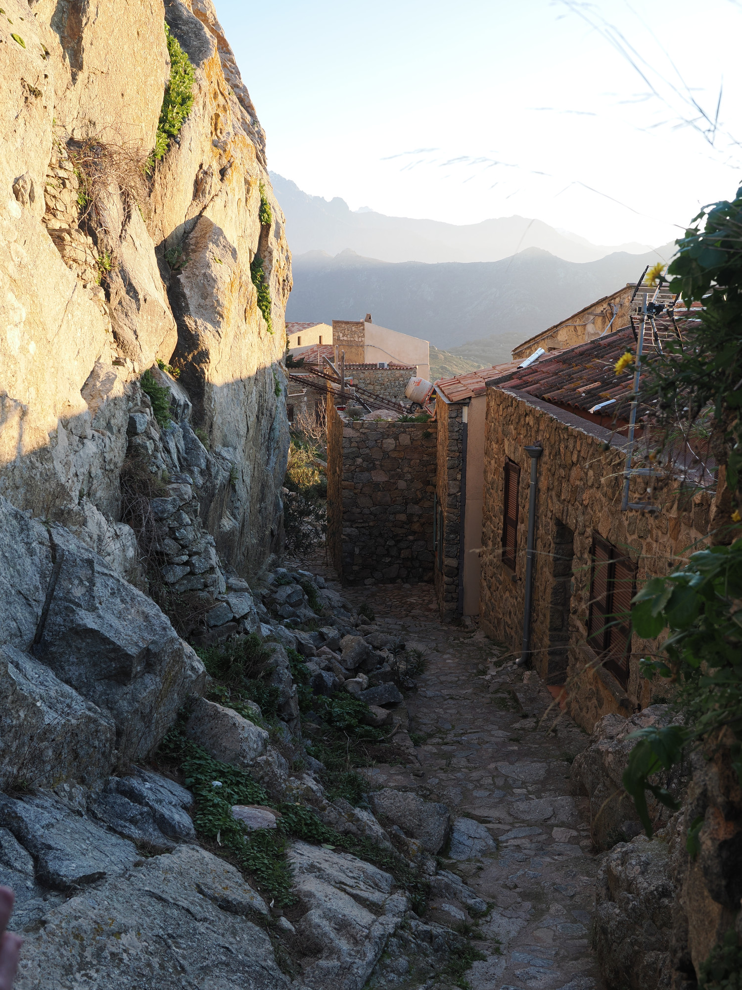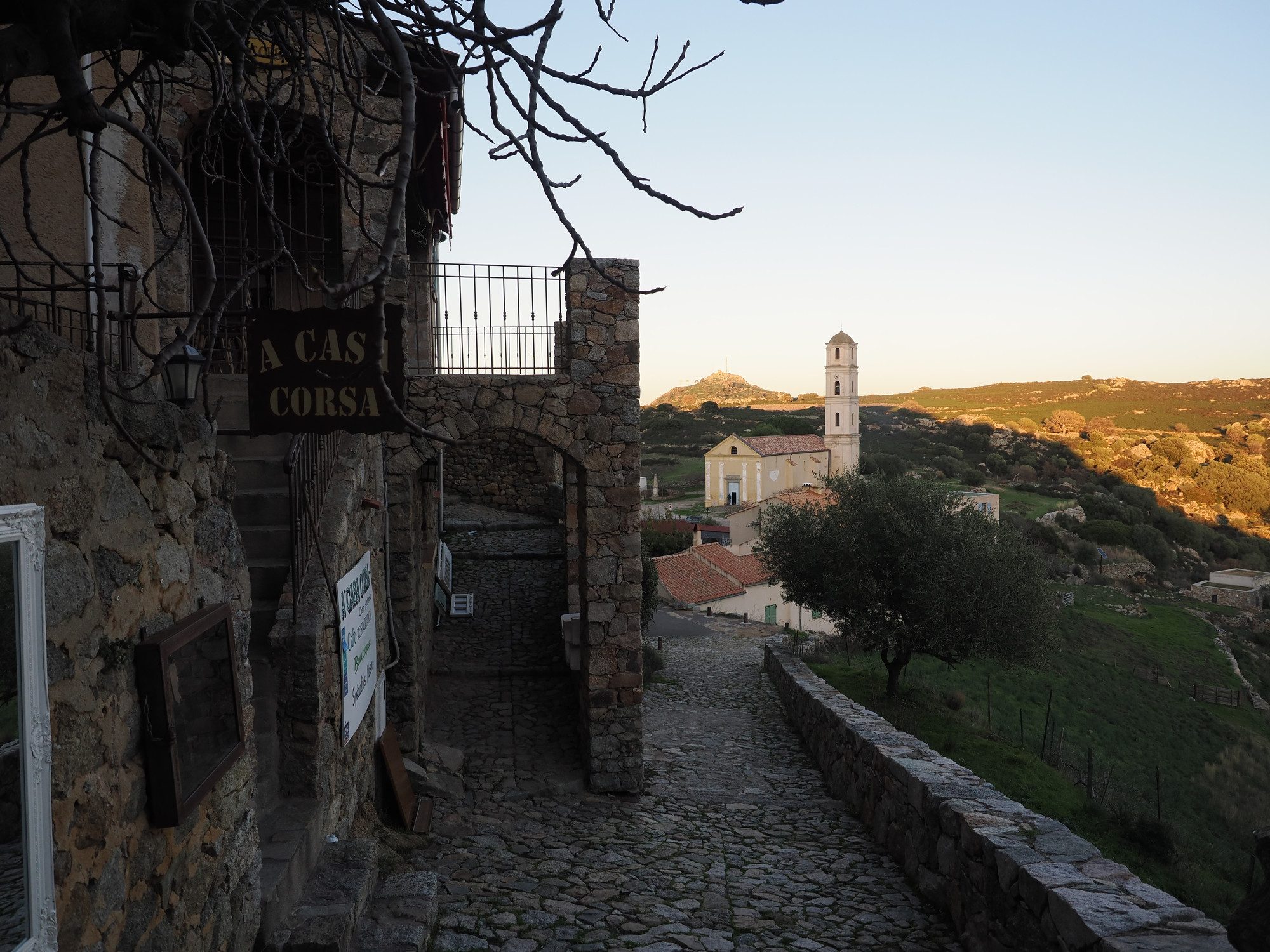 Unser letzter Sightseeing-Punkt für heute ist das Adlernest der Balagne. Laut Einheimischen ist es das älteste Dorf Korsikas und thront oben auf einem Berg. Es ist auf jeden Fall in der Liste der schönsten Dörfer Frankreichs, was bedeutet, dass es nicht mit Souvenir-Shops und Gastronomie- und Hotelbetrieben überladen ist. Die Häuser sind bewohnt, es sieht nicht verriegelt und verlassen aus, wie einige Dörfer, die wir hier schon gesehen haben.