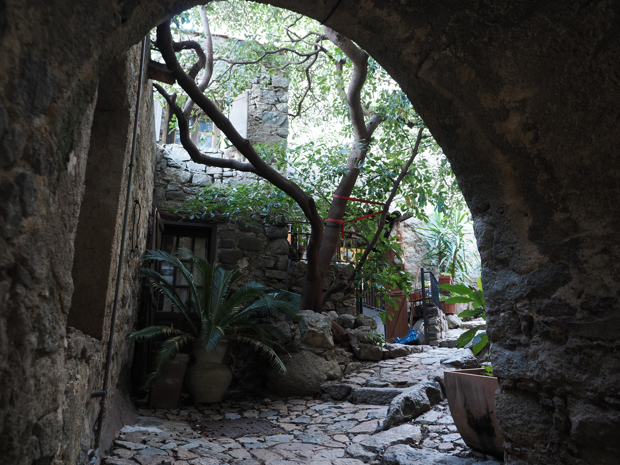Unterhalb vom Ort gibt es einen Parkplatz, dort stellen wir unser Auto ab. Im Ort gibt es nur Fußwege, schmale Gassen und viele Stufen.