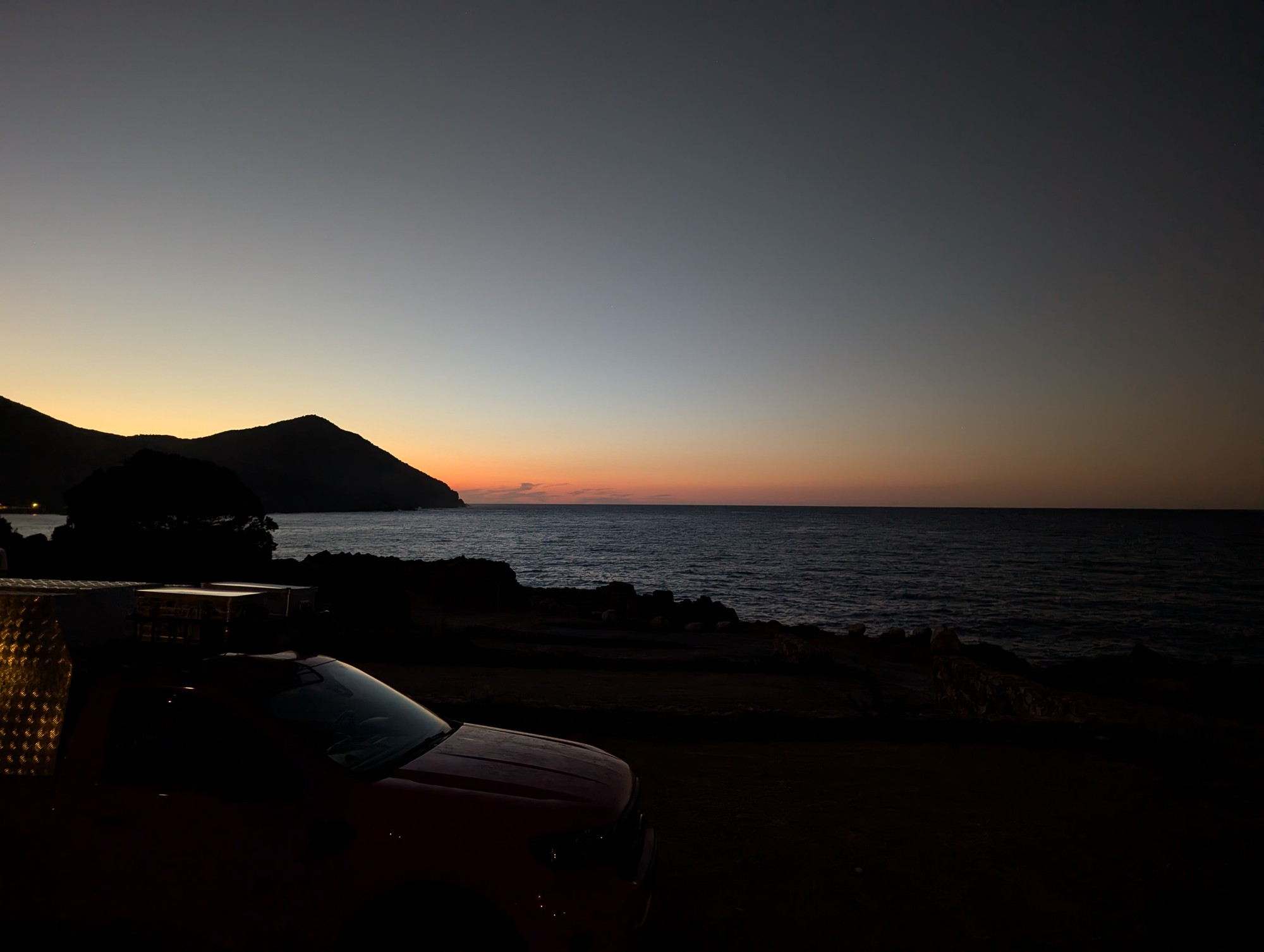 Wir nehmen den kürzeren und vor allem schnelleren Weg durch die Berge. Zwar wären wir lieber an der Küste entlang gefahren, aber da es bald dunkel wird, verzichten wir darauf.
