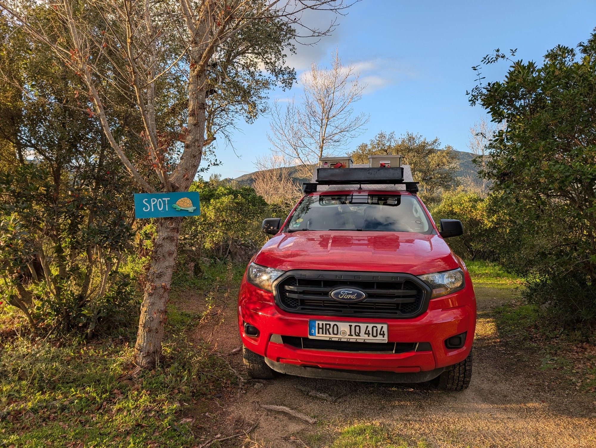 Wir kommen bei Heidis Escape an. Um auf den Stellplatz zu kommen, lotst sie uns einen Berg hinauf. Dann erwartet uns ein wirklich lauschiges Plätzchen.